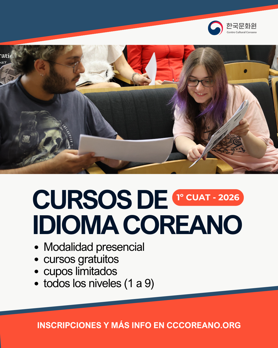 El Centro Cultural Coreano (CCC) anuncia la apertura de las inscripciones para los cursos del Instituto Rey Sejong correspondientes al primer cuatrimestre de 2026. Esta es una oportunidad única para formarse de manera gratuita en la lengua coreana con el respaldo de la institución oficial de difusión cultural de la República de Corea.