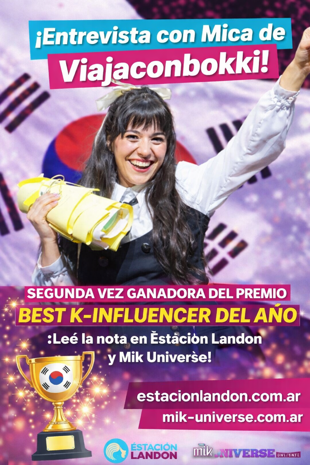 En el último año, Micaela fue reconocida como la segunda mejor K-Influencer del mundo en el nivel avanzado, y anunció que volverá a participar en la próxima convocatoria internacional — esta vez con un objetivo más amplio: ampliar la representación argentina en el programa.